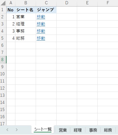 ブック内の全シート名と「移動」リンクが一覧表示されます。