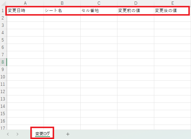 まず、新しいシートを作成して、シート名を「変更ログ」にします。