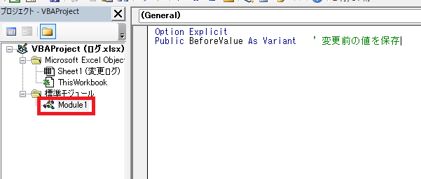 ② 対象シート(「入力」シート)のコードに貼る:変更前を取得