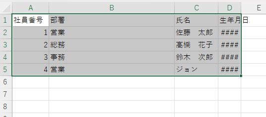 このマクロは選択しているセルの範囲を表にするため、選択をしていないと動作しません。