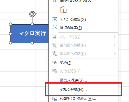 手動登録だけでなく、VBAから図形にマクロを割り当てることもできます。